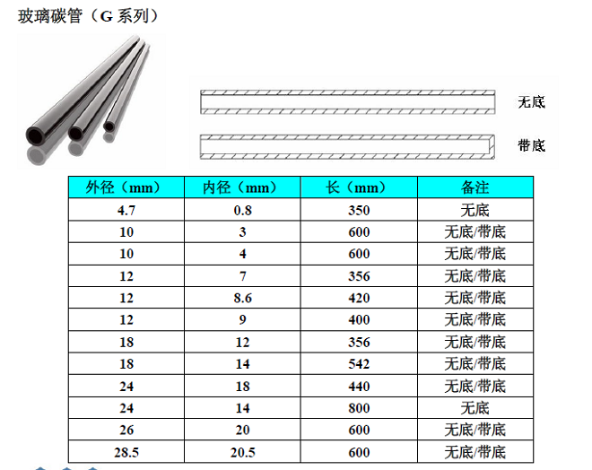 玻碳管可制成圓柱、圓盤等電極形狀,用它作基體還可制成汞膜玻碳電極和化學修飾電極等。在電化學實驗或電分析化學中得到日益廣泛的應用。